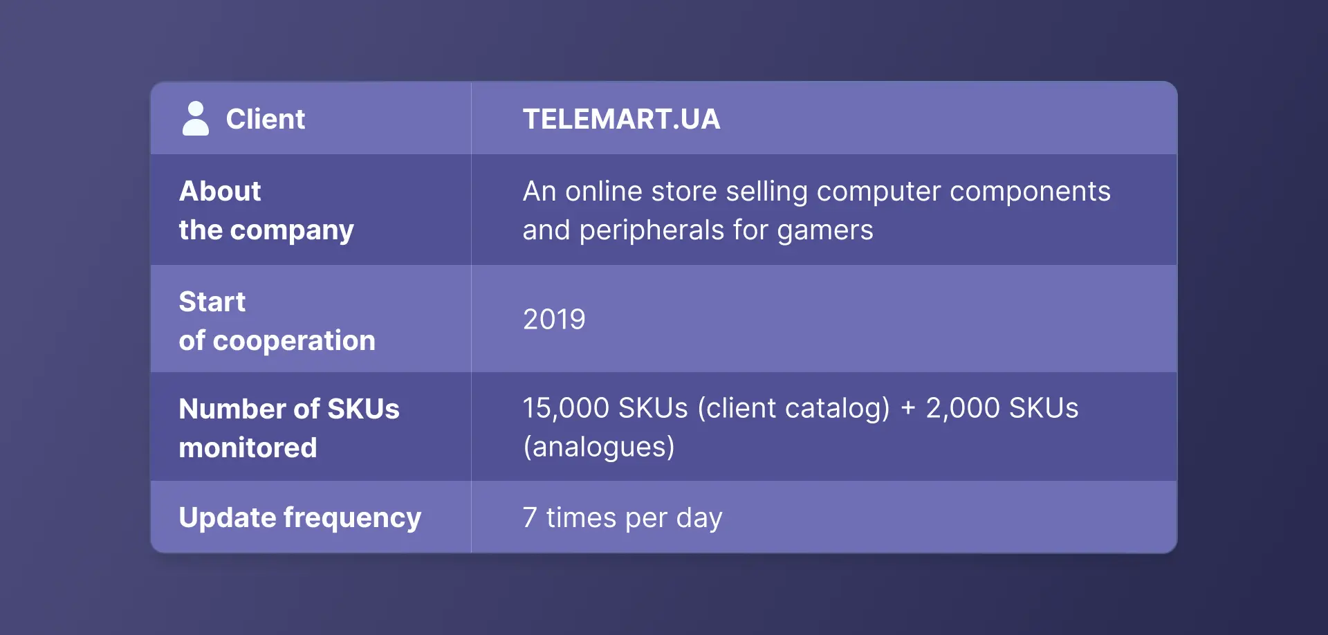TELEMART.UA continues to refine its pricing and procurement strategies, while we provide the client with analytics and tools to make effective decisions.