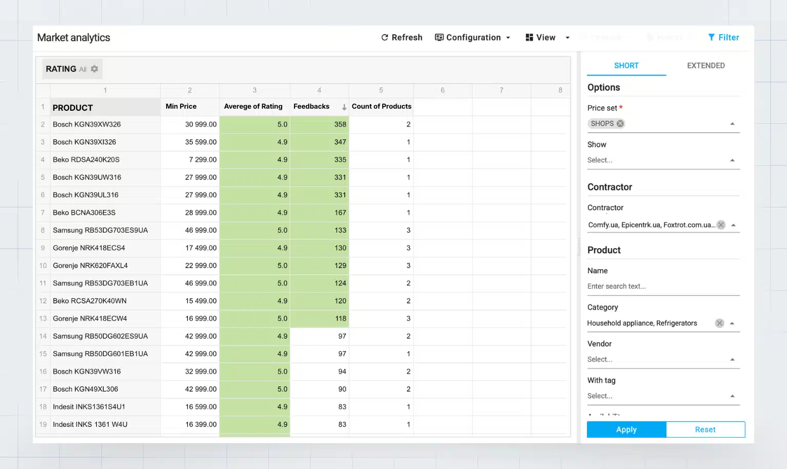Jeśli u kilku konkurentów ten sam produkt ma wysoką ocenę i dużą liczbę opinii, to sygnał, że jest popularny i dobrze oceniany przez klientów.