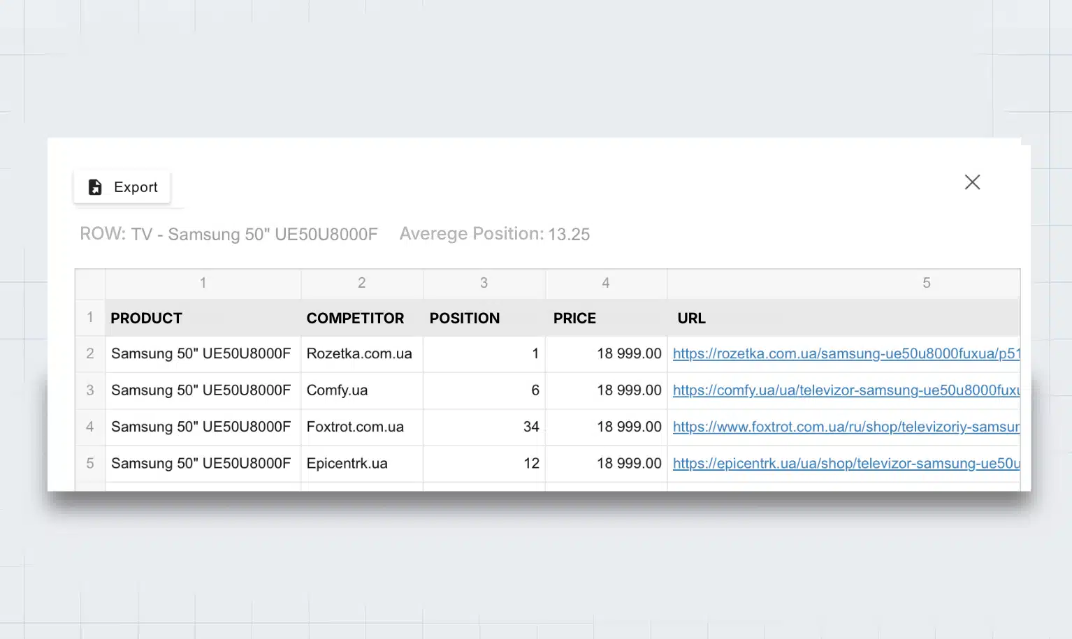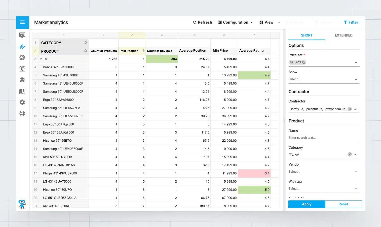 Możemy też „zejść” na poziom pojedynczego produktu i sprawdzić, jakie pozycje zajmuje u każdego konkurenta.