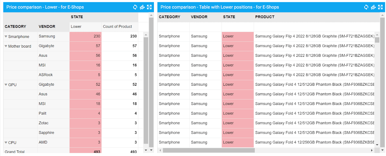 Zestawienie produktów, gdzie ceny w Twoim sklepie są niższe niż u konkurencji.